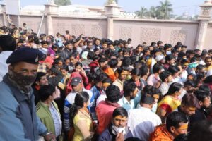 उज्जैन 1 जनवरी । नए वर्ष के पहले दिन भगवान महाकालेश्वर के दर्शन के लिए लाखो लोगों की भीड़ उमड़ पड़ी । न केवल महाकालेश्वर मंदिर बल्कि महाकाल लोक के भी अलौकिक साक्षात्कार करने के लिए लोग उमड़ पड़े ।मंदिर प्रशासन द्वारा सुगम दर्शन के लिए की गई व्यवस्थाओं के कारण आम श्रद्धालुओं को अधिक समय दर्शन के लिए इंतजार नहीं करना पड़ा । एक से डेढ़ घंटे के बीच लोगों को सुगम दर्शन हो गए । कलेक्टर श्री आशीष सिंह के निर्देश पर त्रिवेणी संग्रहालय से लेकर महाकाल लोक एवं महाकालेश्वर मंदिर में प्रशासनिक एवं पुलिस अधिकारियों की ड्यूटी लगाई गई थी । जिन्होंने चाक-चौबंद व्यवस्था करते हुए दर्शनार्थियों को दर्शन लाभ दिलवाए। प्रशासक श्री संदीप सोनी ने बताया कि नव वर्ष के अवसर पर बड़ी संख्या में बाहर से लोग दर्शन के लिए महाकालेश्वर मंदिर पहुंचे । उन्होंने बताया अनुमान है कि लगभग 4 से 5 लाख श्रद्धालुओँ ने आज श्री महाकालेश्वर के दर्शन किए। दर्शन के लिए त्रिवेणी संग्रहालय से ले कर शंख द्वार तक तीन लाइनों में बैरिकेडिंग लगाकर दर्शन की व्यवस्था की गई थी। स्थान स्थान पर श्रद्धालुओं की सुविधा के लिए पेयजल एवं अन्य व्यवस्थाएं उपलब्ध करवाई गई। कलेक्टर श्री आशीष सिंह एवं पुलिस अधीक्षक श्री सत्येंद्र कुमार शुक्ल निरंतर व्यवस्थाओं पर नजर रखे हुए थे ।