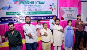 मेघनगर! नगर परिषद मेघनगर द्वारा स्वच्छता ही सेवा अभियान का शुभारंभ एवं सीधा प्रसारण कार्यक्रम अनुविभागीय अधिकारी राजस्व श्रीमती रितिका पाटीदार एवं नगर परिषद अध्यक्ष श्री कमलेश जी मचार की अध्यक्षता में किया गया ।जहां पर उनके द्वारा भारत माता के सचित्र पर पुष्पमाला चढ़ाई गई एवं तत्पश्चात दीप प्रज्जवलित किया गया। उसके पश्चात समस्त उपस्थित जनसमुदाय द्वारा माननीय प्रधानमंत्री नरेंद्र मोदी जी एवं मुख्यमंत्री डॉक्टर मोहन यादव जी का सीधा प्रसारण कार्यक्रम सुना ।अनुविभागीय अधिकारी महोदया,द्वारा सभी नगरवासियों से अपील की भारत सरकार द्वारा चलाए जा रहे स्वच्छता ही सेवा अभियान में सहभागिता करे, ओर अभियान को सफल बनावे।तथा कार्यक्रम के अंत में साथ ही उनके द्वारा स्वच्छता एवं नशा मुक्ति के सम्बन्ध में शपथ ग्रहण करवाई गई। पीएम आवास योजना अंतर्गत मुख्य नगर पालिका अधिकारी राहुल सिंह वर्मा द्वारा हितग्राहियों को गृह प्रवेश करवाया गया।तथा बी.एम.ओ. डॉ. विनोद नायक द्वारा उपस्थित लोगों का स्वास्थ परीक्षण कर उन्हें मेडिकल किट भी उपलब्ध करवाया गया।उक्त अभियान के दौरान उपयंत्री सुरेश गणावा एवं स्वच्छता निरीक्षक सोहन रावत मय स्टॉफ एवं महिला बाल विकास विभाग से आंगनवाड़ी एवं आशा कार्यकर्ता भी उपस्थित रहे।