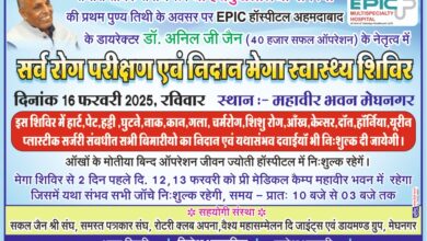 मेघनगर मुस्लिम समाज ने मासूम अनिका के इलाज के लिए 21000 रुपयों की राशि एकत्रित कर सौंपीमेघनगर में धूमधाम से मनाया गया महावीर जन्म कल्याणक, भव्य शोभायात्रा और सामूहिक तप आयोजनमेघनगर नगर परिषद में चार एल्डरमैन नियुक्त, भाजपा नेताओं ने किया स्वागतमेघनगर के फुटतालाब हनुमान मंदिर में भव्य हनुमान जयंती महोत्सव की शुरुआत, बृज कलाकारों ने रचाया कृष्ण भक्ति का अद्भुत रंगमेघनगर में रासलीलाओं से गूंजेगा फुटतालाब, हनुमान जयंती महोत्सव का भव्य आगाज़मेघनगर के एडवोकेट तेजस जैन चुने गए इंदौर हाईकोर्ट बार एसोसिएशन के एक्जीक्यूटिव मेम्बर​रोटरी क्लब ने ललवानी परिवार के सहयोग से 160 छात्राओं को वितरित की गणवेशमेघनगर हिंदू सम्मेलन में उमड़ा जनसैलाब,सामाजिक समरसता और एकजुटता का दिया संदेश​मेघनगर में कल जुटेगा हिंदू समाज: भव्य ‘हिंदू सम्मेलन’ की तैयारियां पूर्णश्री रामचरितमानस युवा मंडल मेघनगर ने महंत श्री दयाराम महाराज जी का जन्मदिवस धूमधाम से मनाया