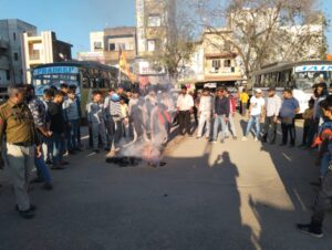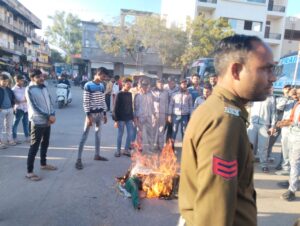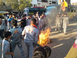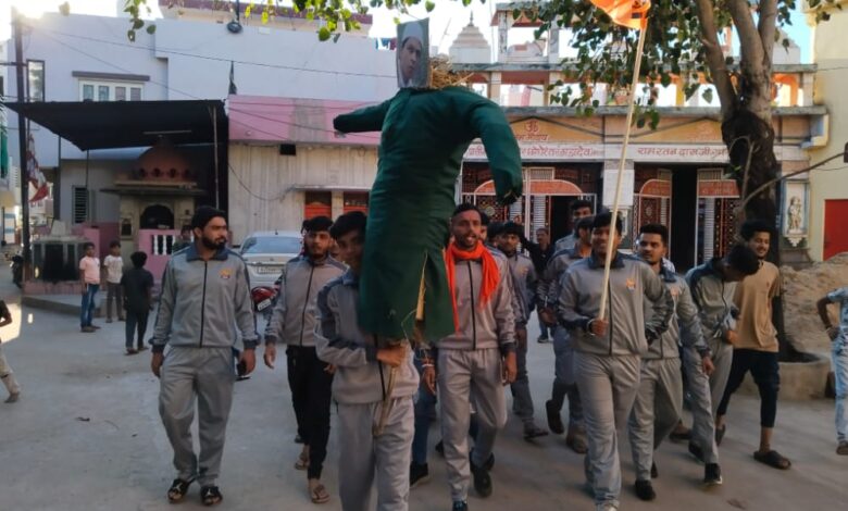 बजरंग दल ने बस स्टेण्ड पर शाहरुख़ खान का पुतला फूंका