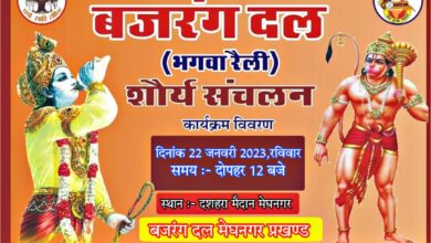 मेघनगर! विश्व हिंदू परिषद बजरंग दल प्रखंड मेघनगर जिला झाबुआ के द्वारा बजरंग दल का शौर्य संचलन 22 जनवरी को…